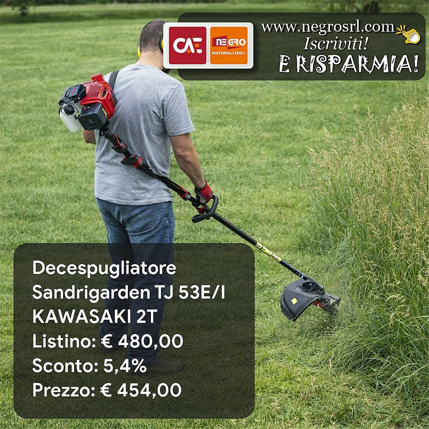 Tra i prodotti di maggiore interesse in vista della primavera spiccano le macchine per la manutenzione del prato e delle aree incolte. In promozione figurano infatti un tagliaerba Sandrigarden Honda semovente da 145 cc e diversi decespugliatori Sandrigarden, inclusi modelli con motore Honda 4 tempi, Kawasaki 2 tempi e versione zainata. A questi si aggiungono accessori e ricambi utili come testine batti e vai, dischi da 40 denti e fili per decespugliatore in diverse misure e profili.